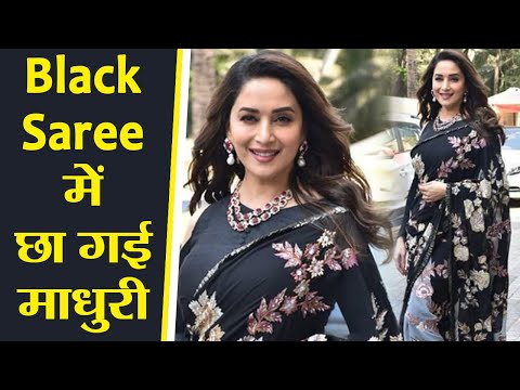 Madhuri Dixit looks GORGEOUS in Black Saree at Kalank Teaser launch; Watch Video | Boldsky - Madhuri Dixit Black Saree - Madhuri looked drop-dead gorgeous in a saree with floral prints all over it and a patch of light blue and a full-sleeved matching blouse. Red jewellery set and ...