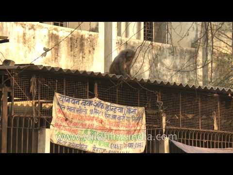 Music Discovery, Charts and Song Lyrics : A Lone Macaque Eyeing Goodies On A House Roof? Okhla Market Place, Delhi | Monkey House Nehru Place